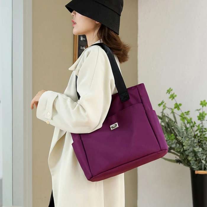 Product specifications; Size:As the picture shows Material: Nylon Color: Purple, Black, Pink,Red Brand New and High Quality Type:Shoulder Bags Package Include: 1 x Lightweight Waterproof Shoulder Bag Features: 1.Multi-compartment Structure: One large main compartment for diapers, toys, food, towels or groceries, Three side pockets for bottles, tissues, or other small accessories. One zipped inner pocket for wallet, cell phone, change coins; Zippered top closure secure items in tote so customers don’t worry anything slipping out. 2.Large Capacity Handbag: Net weight is about 0.48 kg. It is a medium sized purse with roomy capacity to stow your essencials. Tablets, mobile phones, umbrellas can be stored easily. Tips: 1. Due to the light and monitors effect, colors may have lightly difference. 2. Please allow slightly size errors due to manual measurement. Thank for your understanding!